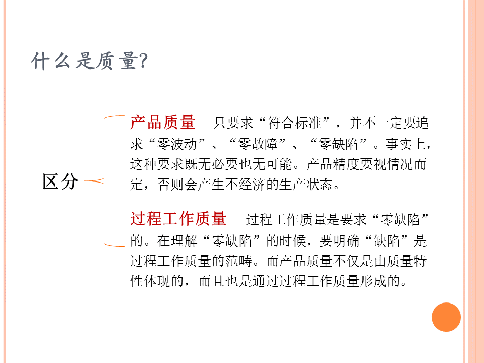 在工作中,零缺陷不僅是一種工作準(zhǔn)則和執(zhí)行標(biāo)準(zhǔn),也是一種工匠精神。零缺陷意味著要從內(nèi)心追求精益求精,要求組織中的每一個(gè)成員都要在工作中下決心做到完美無缺。 “零缺陷”的思想是一種新的思維方式,是一種工匠心做事心態(tài),是企業(yè)參與國(guó)際市場(chǎng)競(jìng)爭(zhēng)的有力保障,也是提高個(gè)人能力和公司整體素質(zhì),最大限度地發(fā)揮公司整體功能,弘揚(yáng)公司企業(yè)文化的契機(jī)。無論是個(gè)人還是組織,只有追求產(chǎn)品的“零缺陷”,才能長(zhǎng)久地在該領(lǐng)域立