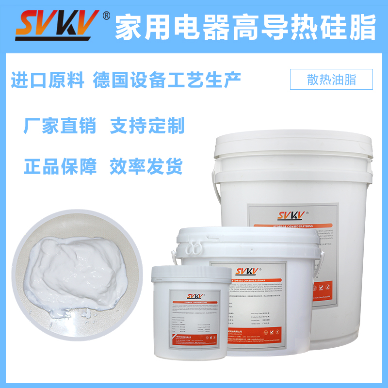 SVKV索科家用電器高導(dǎo)熱硅脂,耐高低溫,可適用溫度范圍廣,不易出現(xiàn)風(fēng)干硬化或熔化現(xiàn)象,有利于提高器件導(dǎo)熱效果,改善熱轉(zhuǎn)移狀況。