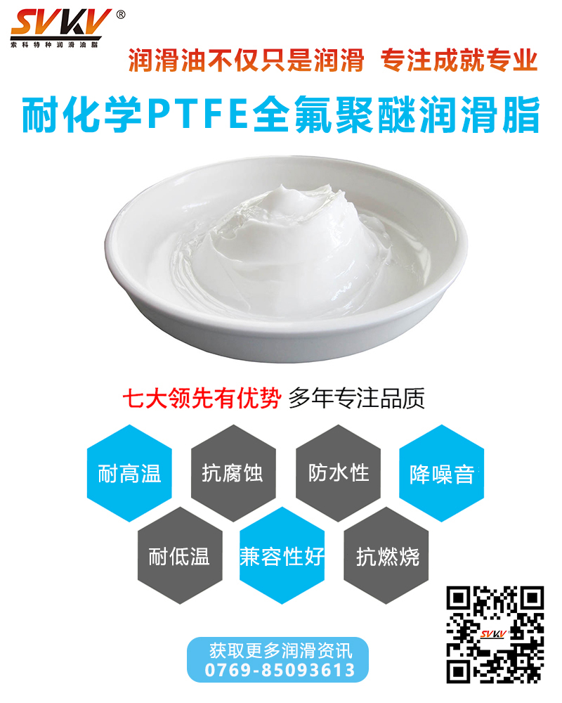 索科SVKV耐化學(xué)PTFE全氟聚醚潤滑脂適用于各種活性化學(xué)品侵蝕或酸堿腐蝕環(huán)境中的機械設(shè)備、齒輪、軸承等零部件的潤滑和密封,以及輸送各種腐蝕性氣體的管道閥門的密封潤滑。