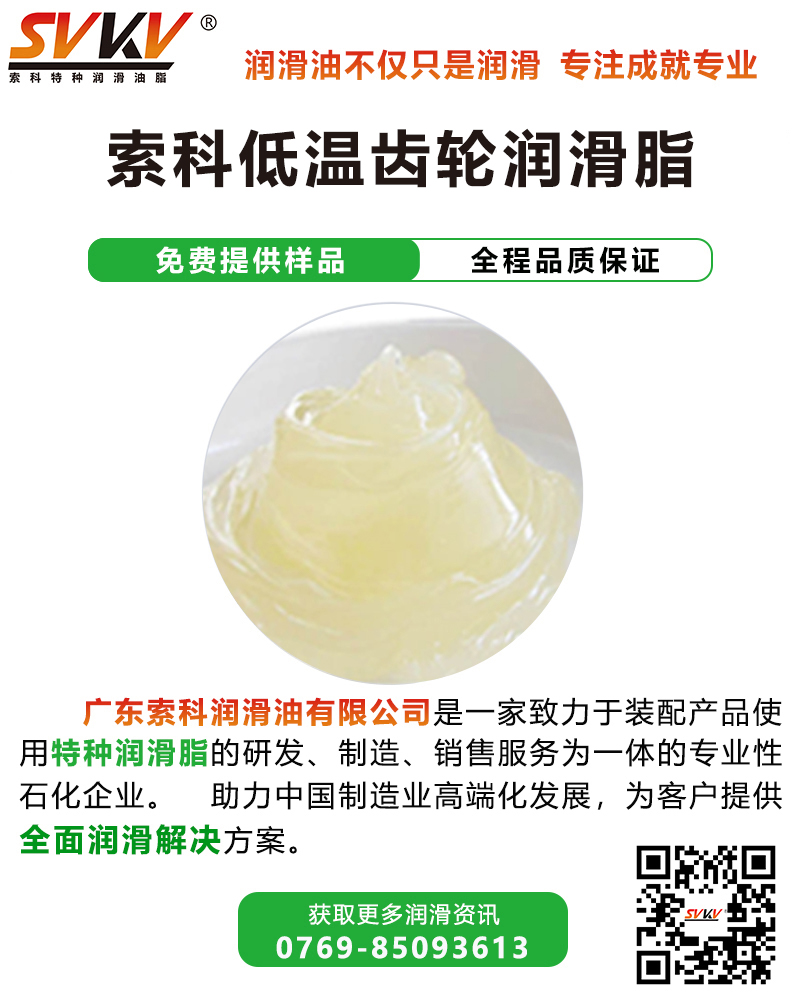 索科SVKV低溫齒輪潤(rùn)滑脂在低溫零下幾十度的環(huán)境下仍能有效降低軸承、齒輪及設(shè)備的啟動(dòng)及運(yùn)行時(shí)的扭矩力,是專為嚴(yán)寒地區(qū)設(shè)備軸承等零部件的潤(rùn)滑而研制的。