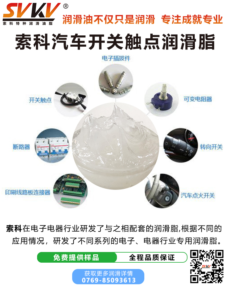 索科SVKV汽車開關觸點潤滑脂性能優(yōu)點: