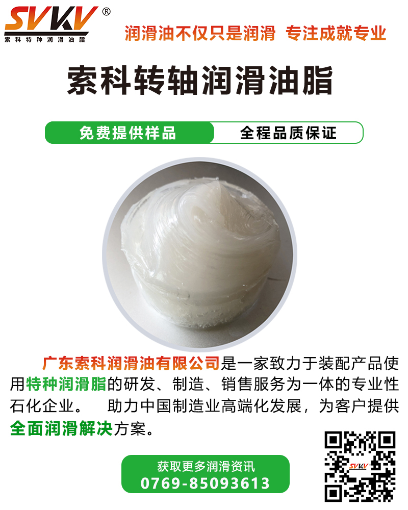 廣東索科潤滑油有限公司是一家致力于裝配產(chǎn)品使用特種潤滑脂的研發(fā)、生產(chǎn)、定制、服務為一體的專業(yè)性石化企業(yè)。致力為制造業(yè)客戶,提供專業(yè)的選油方案,協(xié)助客戶解決產(chǎn)品裝配時的潤滑難題,還可根據(jù)客戶特殊需求訂做適合的潤滑油品。有效提高產(chǎn)品性能、減低維護成本,索科助力制造業(yè)高端化發(fā)展!