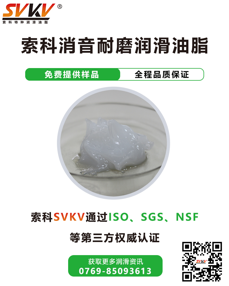 索科SVKV消音耐磨潤滑油脂選用高性能基礎(chǔ)油,并添加多種高效抗氧化、抗腐蝕等添加劑精制而成,能有效減少零部件磨損,降低噪音,達到消音潤滑,延長零部件使用壽命的效果。