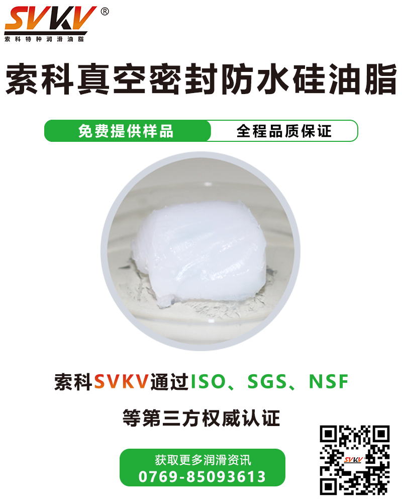 索科SVKV真空密封防水硅油脂廣范應(yīng)用于真空度達7.0×10 -7 kPa之真空系統(tǒng)中的磨口玻璃接頭及玻璃活塞的潤滑與密封,食品、供水管道中的旋塞和閥門,金屬和橡膠密封件的密封與潤滑。