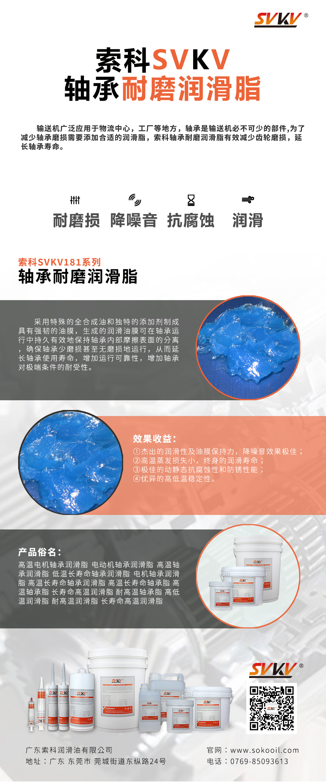 索科為企業(yè)提供潤滑方案,降本增效,適合的潤滑脂能有效減少磨損,降低噪音,延長產(chǎn)品壽命。索科提供軸承耐磨潤滑脂0769-85093613免費(fèi)樣品,全程品質(zhì)保證!