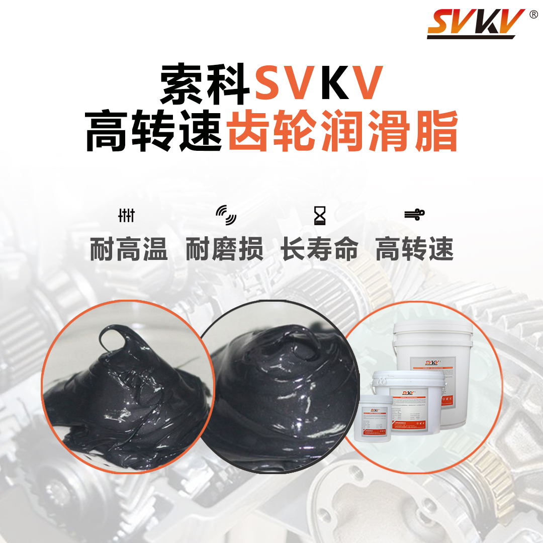 高轉(zhuǎn)速齒輪潤(rùn)滑脂一般要求基礎(chǔ)油粘度適中或較小,油膜粘度較低,極壓性較低,主要是降低齒輪在高速下的運(yùn)轉(zhuǎn)扭矩。索科專門為高速高速齒輪研發(fā)了一款潤(rùn)滑脂,索科SVKV941系列高轉(zhuǎn)速齒輪潤(rùn)滑脂,能夠滿足齒輪潤(rùn)滑需求,降低齒輪噪音延長(zhǎng)壽命。