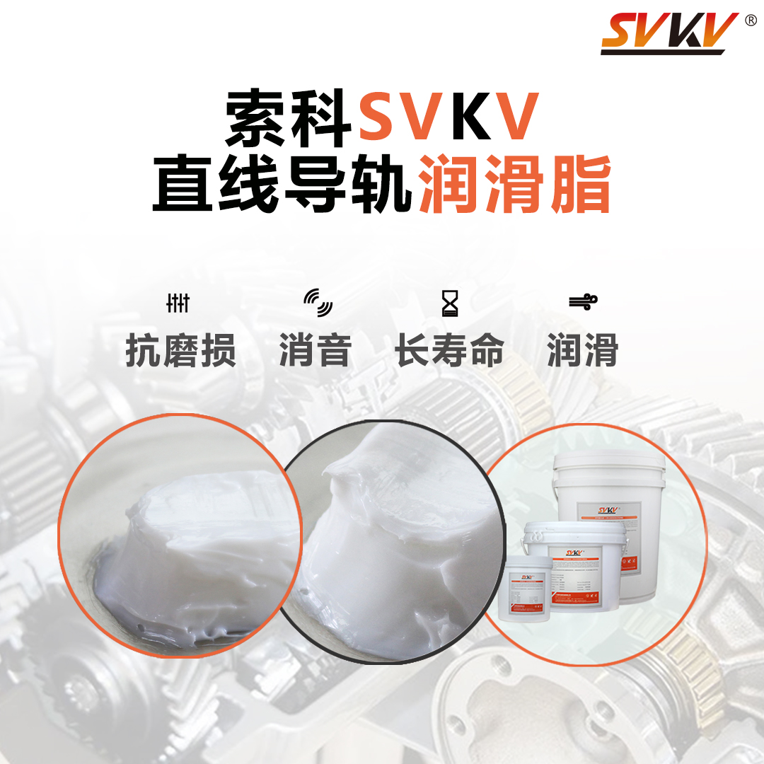 那么直線導(dǎo)軌該選擇哪款潤滑脂呢?索科技術(shù)向大家推薦索科SVKV 620系列直線導(dǎo)軌潤滑脂,由全合成基礎(chǔ)油和高性能復(fù)合稠化劑精煉而成,內(nèi)含特殊的(EP)抗磨聚合物,具有優(yōu)良的高速潤滑性和承載能力。SK系列導(dǎo)軌油脂還具低摩擦系數(shù),提高絲桿的效率,并延長使用壽命;優(yōu)異低溫防卡性能,起動扭矩極小,不凍結(jié)不會龜裂;抗微動磨損保護(hù),可降低滑動摩擦微震動產(chǎn)生的噪聲等特點。